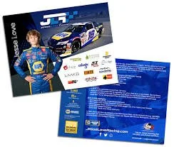 Hero Cards, also known as autograph cards, are ideal for meet-n-greets, sponsored autograph appearances, race day hand outs and fan mailings. They’re perfect for showcasing drivers, statistics and sponsors of any series and level (APC Series, DAYCO Series, Home Track, NASCAR, Whelen, Late Model, World of Outlaws, Go-Karts, US Legends and more) and are fun for fans of any age to collect and showcase.
